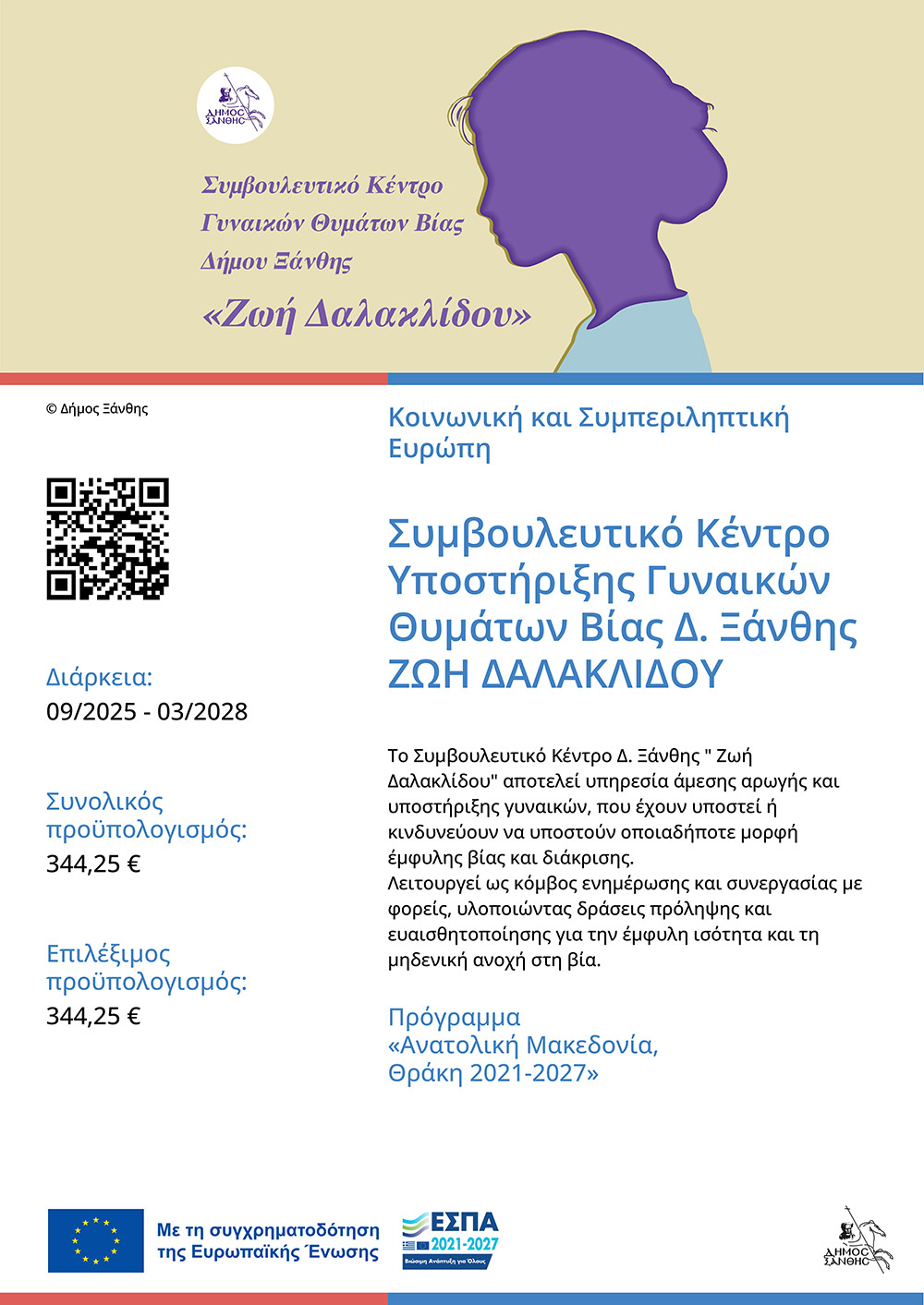 • Συμβουλευτικό Κέντρο Γυναικών Θυμάτων Βίας Δήμου Ξάνθης "Ζωή Δαλακλίδου" (Κατάλογος ενταγμένων έργων ΕΣΠΑ)