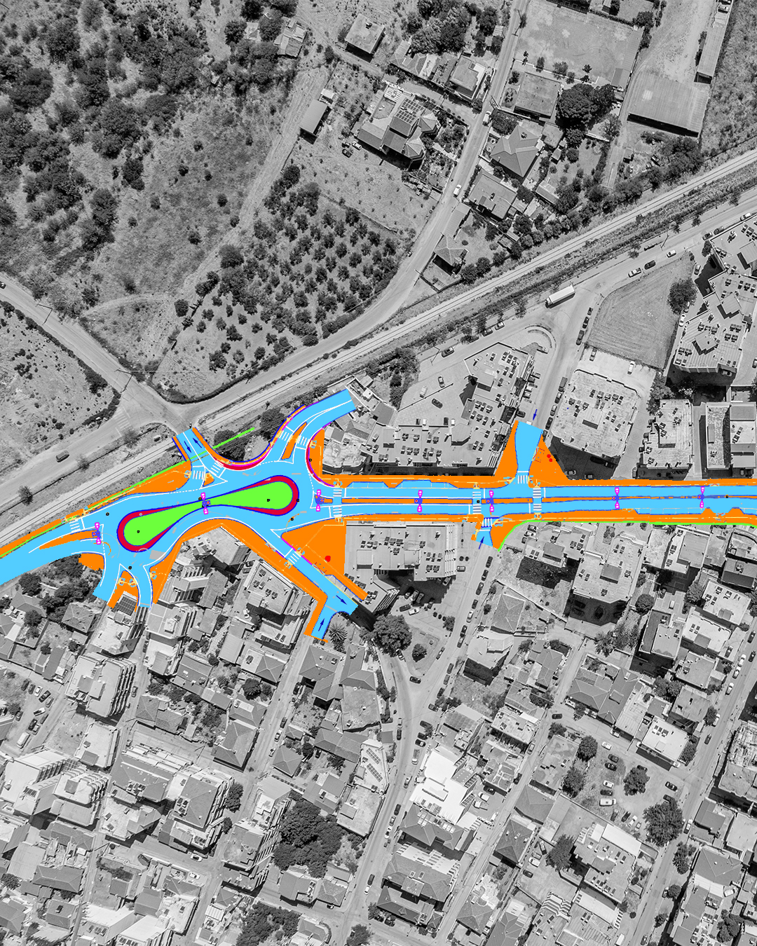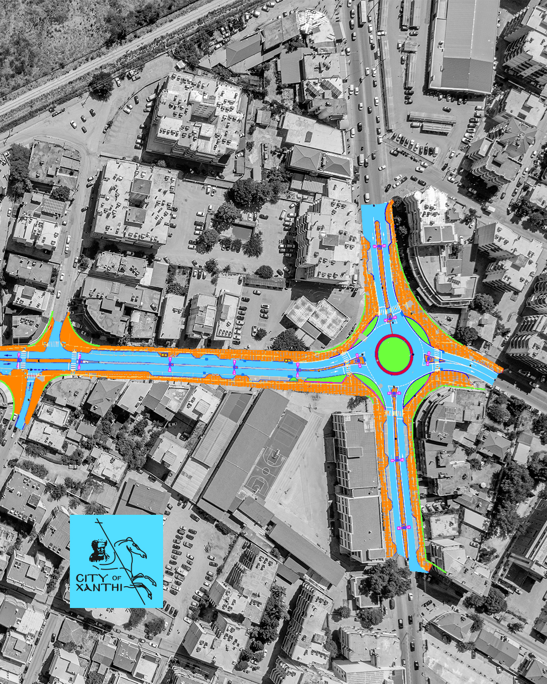 Η διαπλάτυνση του πεζοδρομίου και η ταυτόχρονη μετατροπή του υφιστάμενου οδικού τμήματος σε ήπιας κυκλοφορίας πραγματοποιήθηκε στο πλαίσιο κυκλοφοριακής μελέτης που εκπονήθηκε για την εκτέλεση του έργου. Η διαμόρφωση έχει σχεδιαστεί με τρόπο που εξασφαλίζει τόσο την ασφαλή διέλευση οχημάτων όσο και την προστασία και άνεση των πεζών. Παράλληλα, η προσαρμογή της οδικής χάραξης εντάσσεται στη συνολική διαμόρφωση του κόμβου, όπου η μείωση του πλάτους των οδών συμβάλλει στη δημιουργία ασφαλέστερης εισόδου και πρόσβασης στον νέο κυκλικό κόμβο. Η υλοποίηση του κυκλικού κόμβου αναμένεται να εξασφαλίσει τη συνεχή ροή της κυκλοφορίας, να περιορίσει τη συμφόρηση και να μειώσει σημαντικά τον κίνδυνο ατυχημάτων.